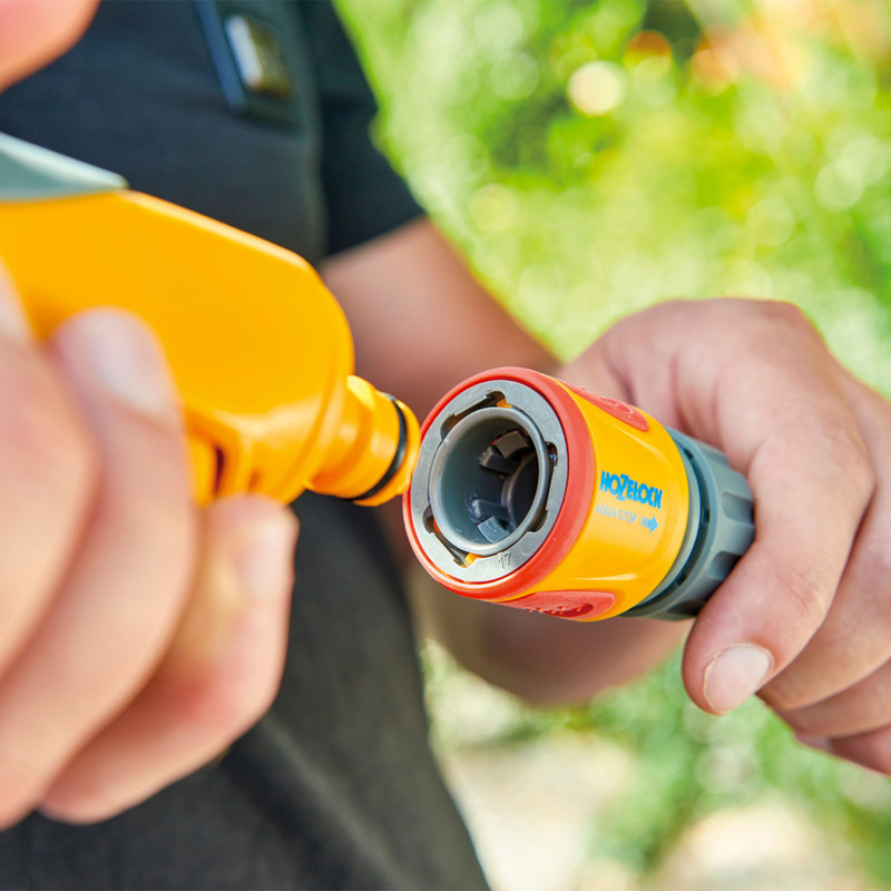 Switch between watering accessories without wasting water with the AquaStop feature